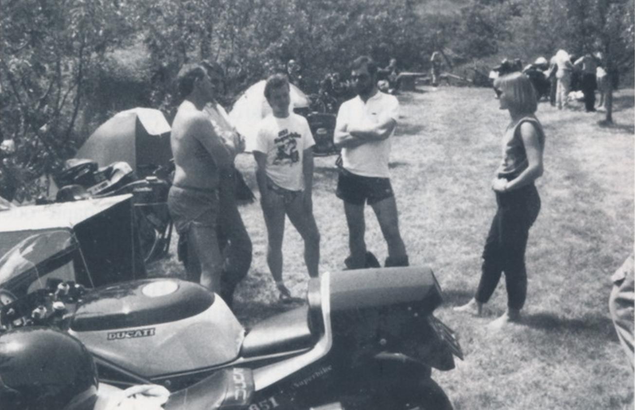 Clubmitglieder, von denen manche den Konstrukteur Fabio Taglioni noch